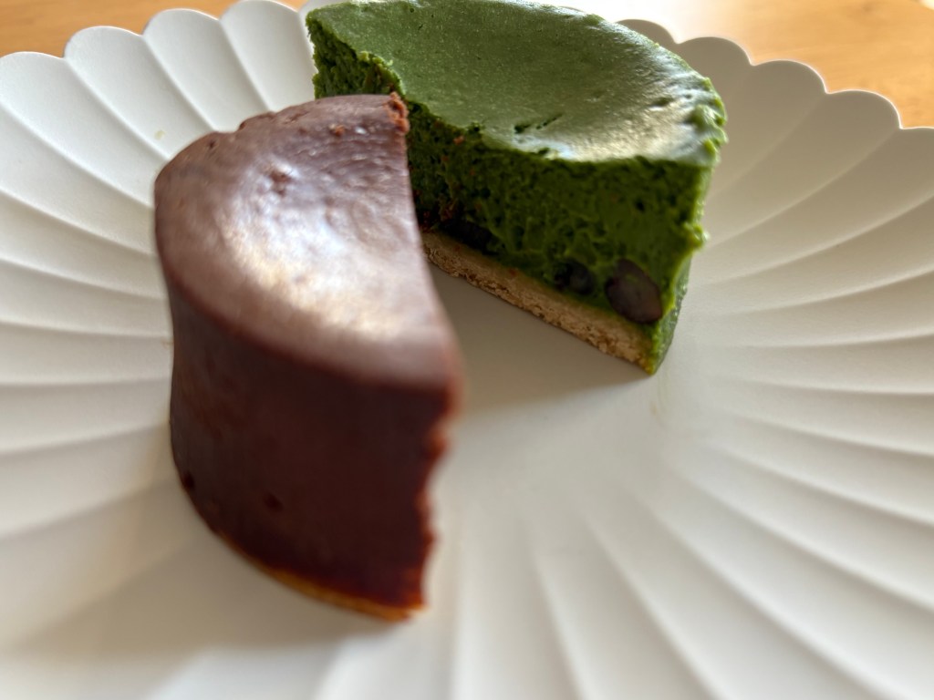 抹茶の方がチョコレートよりも更に柔らかくて小豆の食感もアクセントになっていて、どちらも濃厚で珈琲と美味しくいただきました。